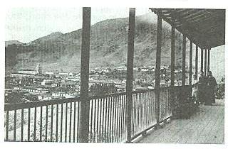 Fotografía del pasillo del Seminario de Jericó ubicado en el Departamento de Antioquia. En el cual el padre Rafael García Herreros fue docente. Se puede observar el pueblo y las montañas antioqueñas.