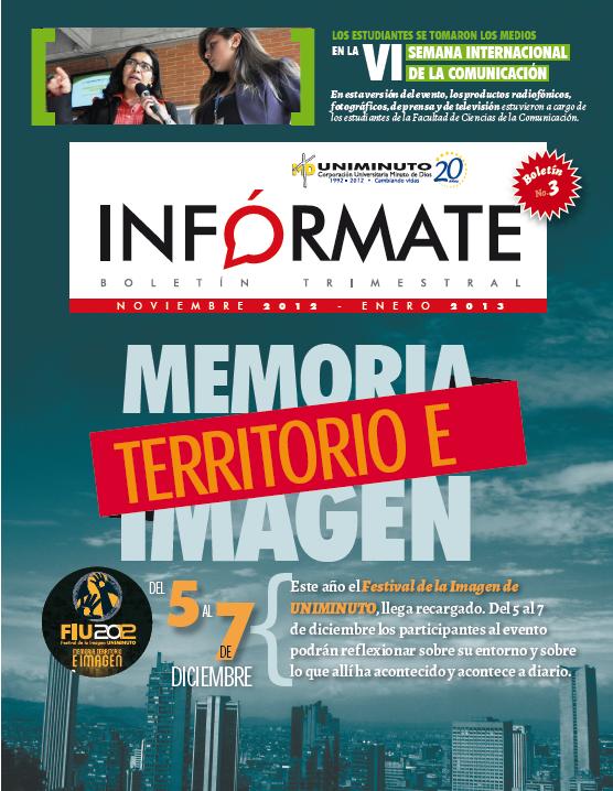 Te presentamos INFÓRMATE, el nuevo medio de comunicación de la Facultad de Ciencias de la Comunicación, que tiene como prepósito fortalecer la interacción entre estudiantes, profesores y directivas. INFÓRMATE te llevará cada tres meses, información de tu interés sobre la vida en esta Facultad en cuanto a procesos y procedimientos. Así mismo, sobre oportunidades de vincularte con actividades, proyectos, concursos y otros temas de interés